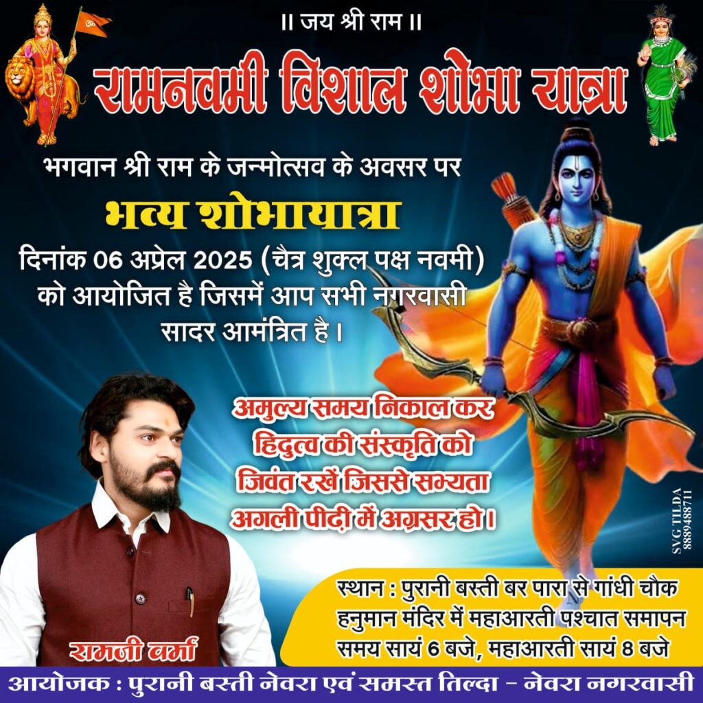 तिल्दा-नेवरा में 6 अप्रैल को रामनवमी पर भव्य शोभायात्रा का आयोजन