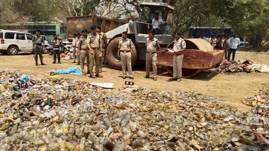 पुलिस महानिरीक्षक रायपुर रेंज रायपुर श्री अमरेश मिश्रा के द्वारा आबकारी अधिनियम के तहत् कई वर्षो से जप्त शराब के विधिवत् नष्टीकरण संबंधी दिये गये निर्देश के परिपालन में उमनि एवं वरिष्ठ पुलिस अधीक्षक डॉ लाल उमेद सिंह के मार्गदर्शन में जिला रायपुर के सभी 32 थानों में वर्षो से जप्त कर रखे हुये, 3585 आबकारी अधिनियम के प्रकरणों में 12582 लीटर देशी शराब, 5583 लीटर विदेशी शराब, 88 लीटर महुआ शराब, 427 लीटर बियर, कुल 18804 लीटर कीमती लगभग एक करोड़ बीस लाख रूपये के शराब का आबकारी अधिनियम में निहित प्रावधान के अंतर्गत जिला कलेक्टर एवं दण्डाधिकारी के द्वारा गठित समिति जिसमें अतिरिक्त जिला दण्डाधिकारी श्री देवेन्द्र पटेल, अतिरिक्त पुलिस अधीक्षक (ग्रामीण) श्री कीर्तन राठौर, उपायुक्त आबकारी जिला रायपुर श्री रामकृष्ण मिश्रा, नगर पुलिस अधीीक श्री अमन रमन झा, निरीक्षक नरेन्द्र मिश्रा थाना तेलीबांधा, निरीक्षक विनय बघेल थाना टिकरापारा, निरीक्षक भावेश गौतम थाना माना जिला रायपुर की उपस्थिति में थाना माना परिसर में विधिवत् नष्टीकरण किया गया।
