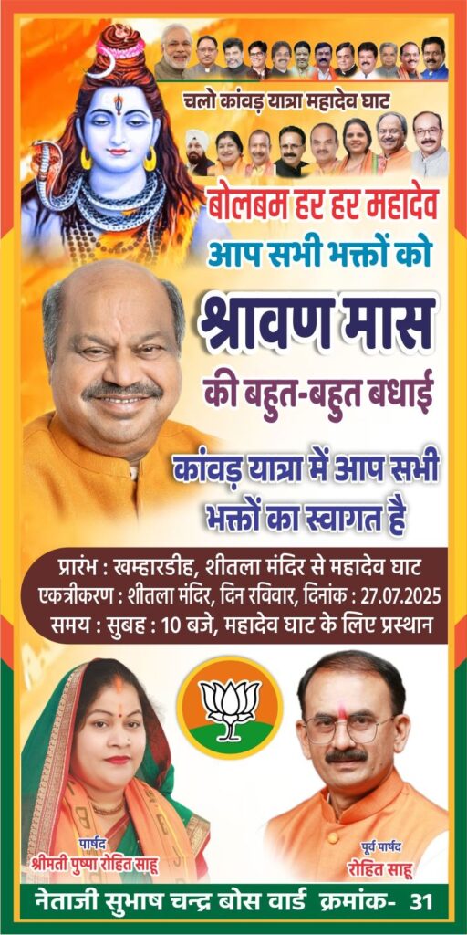 श्रावण में “बोल बम हर हर महादेव” के जयकारों से वातावरण भक्तिमय रहता है।