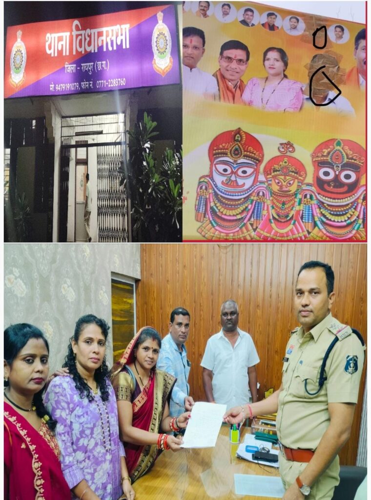रायपुर: बात करते सड्डू महात्मा गांधी वार्ड क्रमांक 8 के पार्षद सावित्री भारत धीवर जी जो की कुछ महीने पहले पार्षद चुनाव में सावित्री भारत धीवर निर्दलीय चुनाव लड़ा और विजय प्राप्त किया, उसके बाद सांसद बृजमोहन अग्रवाल ने उसे बीजेपी में शामिल किया और पेपर न्यूज़ में सभी प्रदेश वासी को इसकी जानकारी दिया गया, अब भगवान जगन्नाथ यात्रा का बधाई संदेश के लिए पोस्टर बनाया गया जिसमें महात्मा गांधी वार्ड के पार्षद सावित्री भारत धीवर का पोस्टर में फोटो डालने के बाद उसे दो फोटो पार्षद सावित्री धीवर और पार्षद प्रतिनिधि का फोटो को टेप चिपका कर उसे जगह जगह प्रचार किया गया | पार्षद को जानकारी मिलते ही थाना पहुंचा |