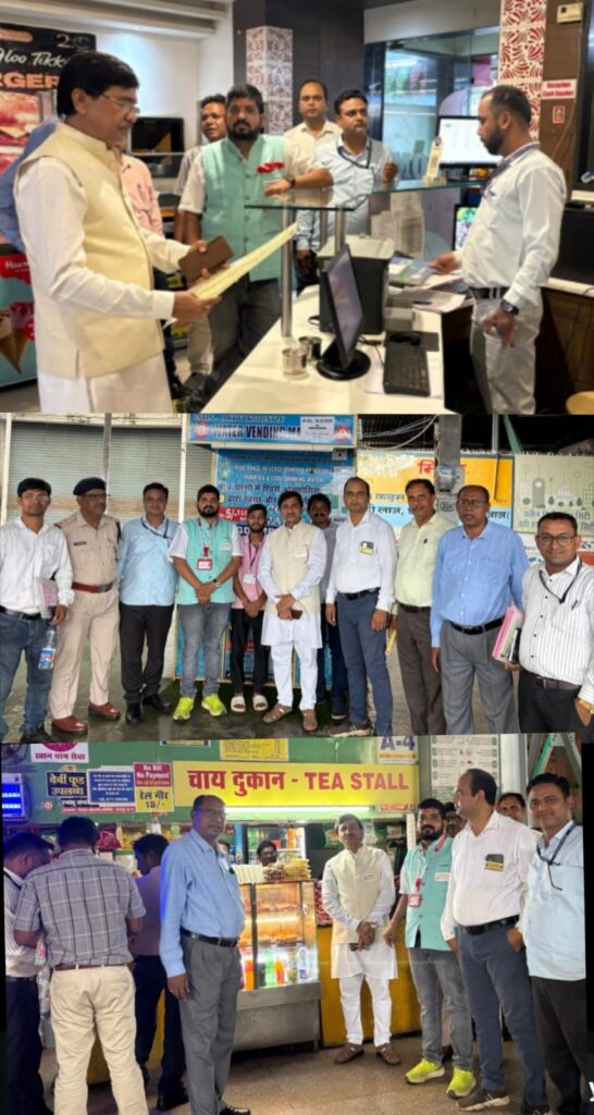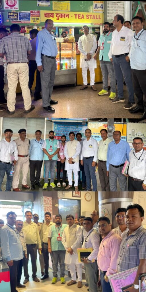 निरीक्षण के दौरान संगठन के राष्ट्रीय महासचिव श्री चितरंजन कुमार पर्वत जी, संगठन के प्रदेश कोषाध्यक्ष श्री शैलेश चौधरी के साथ रेलवे स्टेशन रायपुर के स्टेशन मास्टर श्री आर के मंडल जी, डिप्टी SS कमिश्नर श्री सत्येंद्र सिंह जी , नापतौल विभाग के कंट्रोलर श्री देवेंद्र भारद्वाज सर जी के कहने पर डिप्टी कंट्रोलर श्री रविशंकर सोरी जी अपनी टीम के साथ मौजूद रहे। रेलवे स्टेशन में निरीक्षण के दौरान साफ सफाई स्वच्छ एवं एक्सीलेटर, लिफ्ट चालू पाया गया। वरिष्ठ नागरिकों, मरीजों एवं विकलांगों, के लिए रेलवे ने लिफ्ट की सुविधा प्रदान की है, यह सुविधा युवा पुरुष एवं महिलाएं अति आवश्यक होने पर ही इस्तेमाल करे। रेलवे परिसर में जितने भी दुकान संचालित है दुकानदारों को एमआरपी में सामग्री बेचने एवं एक्सपायरी तिथि देखकर विक्रय करने की बात बताई साथ ही जितने भी होटल संचालित है स्वच्छता एवं सही मूल्य पर एवं क्वांटिटी और क्वालिटी पर विशेष ध्यान देने जानकारी दी गई। निरीक्षण के दौरान संगठन के प्रदेश महामंत्री श्री लोकेश वर्मा एवं खैरागढ़ जिला अध्यक्ष श्री संजय वर्मा ,रायपुर जिला अध्यक्ष दुर्गेश वर्मा जी रोहित वर्मा जी प्रीत लाल कुर्रे जी इंद्र कुमार वर्मा जी भी उपस्थित रहे।
