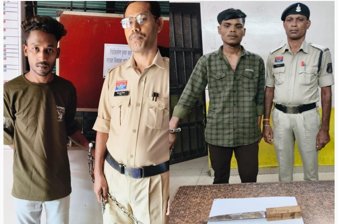 धारदार चाकू के साथ 02 आरोपी प्रेम दुबे, राकेश बाघ गिरफ्तार।